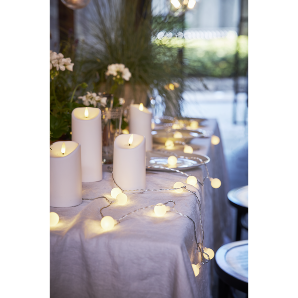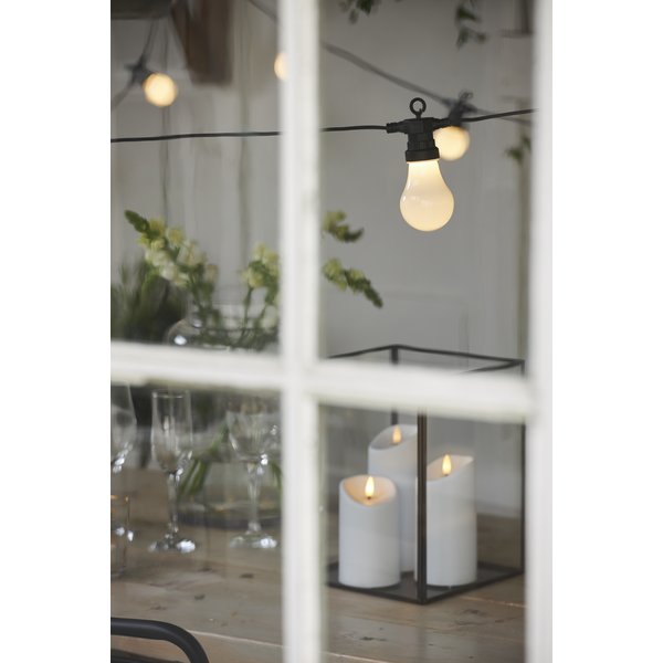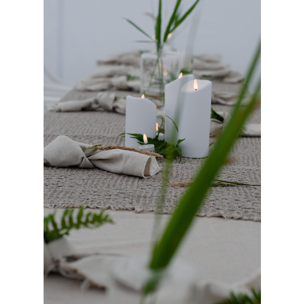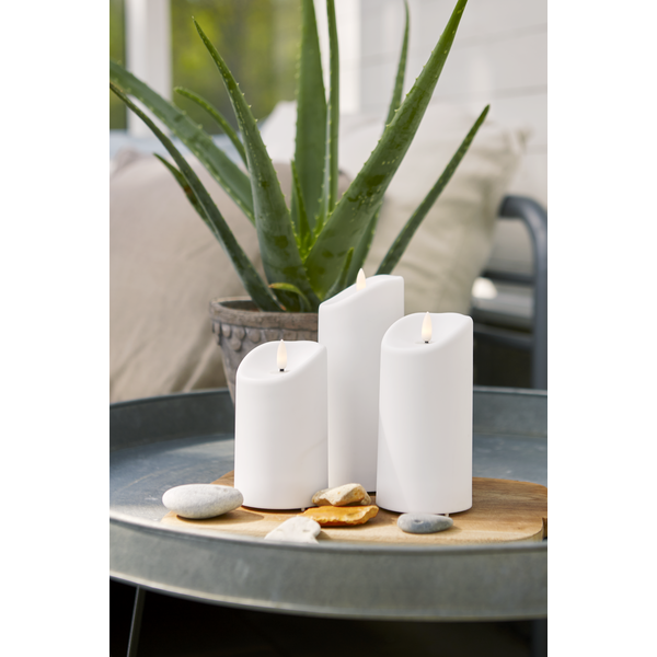 Batteridrivet blockljus med en naturtrogen låga som lyser med varmvitt sken.