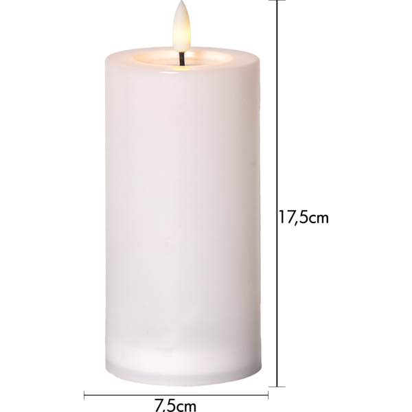 Ljuset är 17,5cm högt och 7,5cm i diameter.